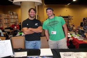 Just offhand I’d say that cookies and sketches did a lot better for the bunch of us than bookmarks, key-chains, fountain pens, pencils and postcards, the usual promotional materials for everyone. Was it cost effective? Well, no. Those special cookies cost us a bundle, but our goal was to sell my books not to make a lot of money. The guys? Well, in our opinion they priced their work too low, but they met a lot of people who’ll remember them. And we bought their comic book.
